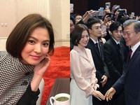 韓星宋慧喬和宋仲基10月底完婚後,兩人飛往西班牙度蜜月,近日被拍到夫妻倆一同現身IU演唱會,黏TT模樣羨煞旁人。她14日飛往北京婚後首復工,與南韓總統文在寅、EXO-CBX一起出席中韓經貿合作交流會,晚上則出席國宴,從女星秋瓷炫事後公開的照片來看,見她手撐下巴、仰起甜美微笑,在網上引起討論。(影劇 / 2017-12-16 16:58)